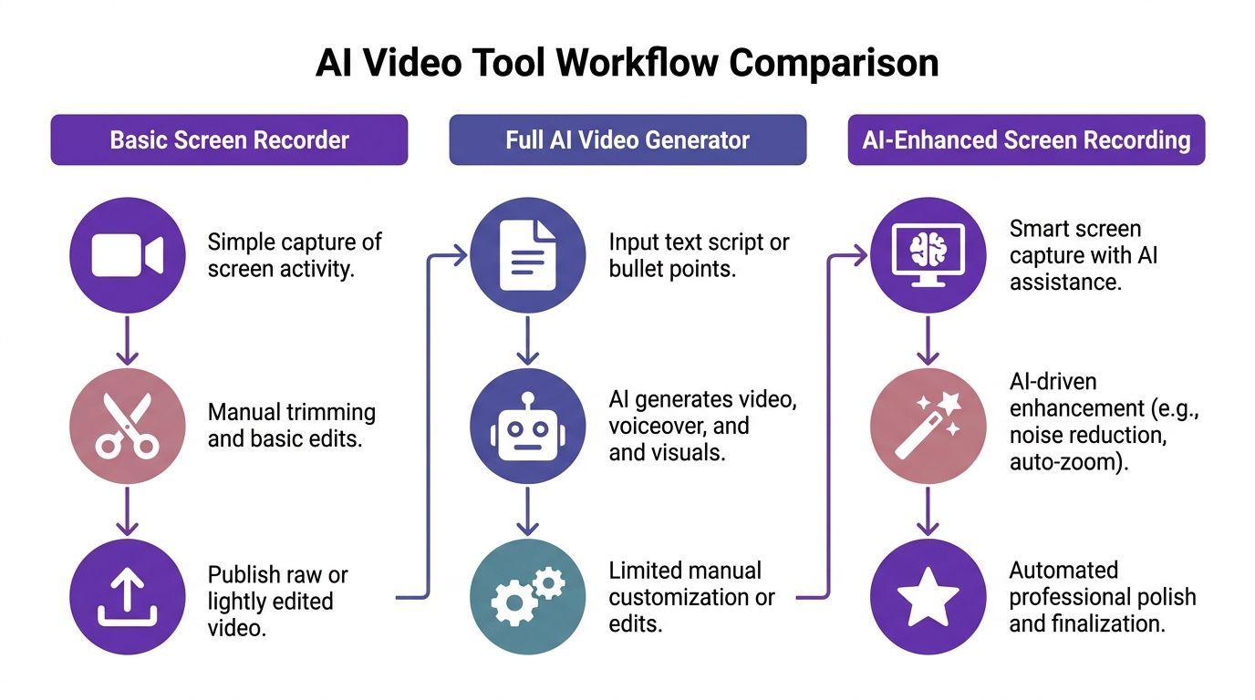 The ai video creation tools market looks crowded because several different products now sit under the same label. Buyers get confused when they compare a text-to-video generator against a screen editor as if they were substitutes.