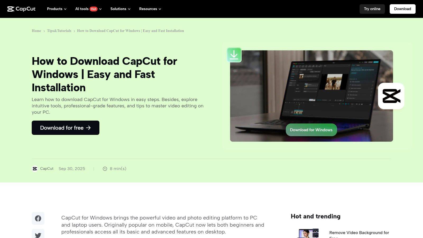 Access: Download CapCut for Windows for free from the official website or the Microsoft Store.