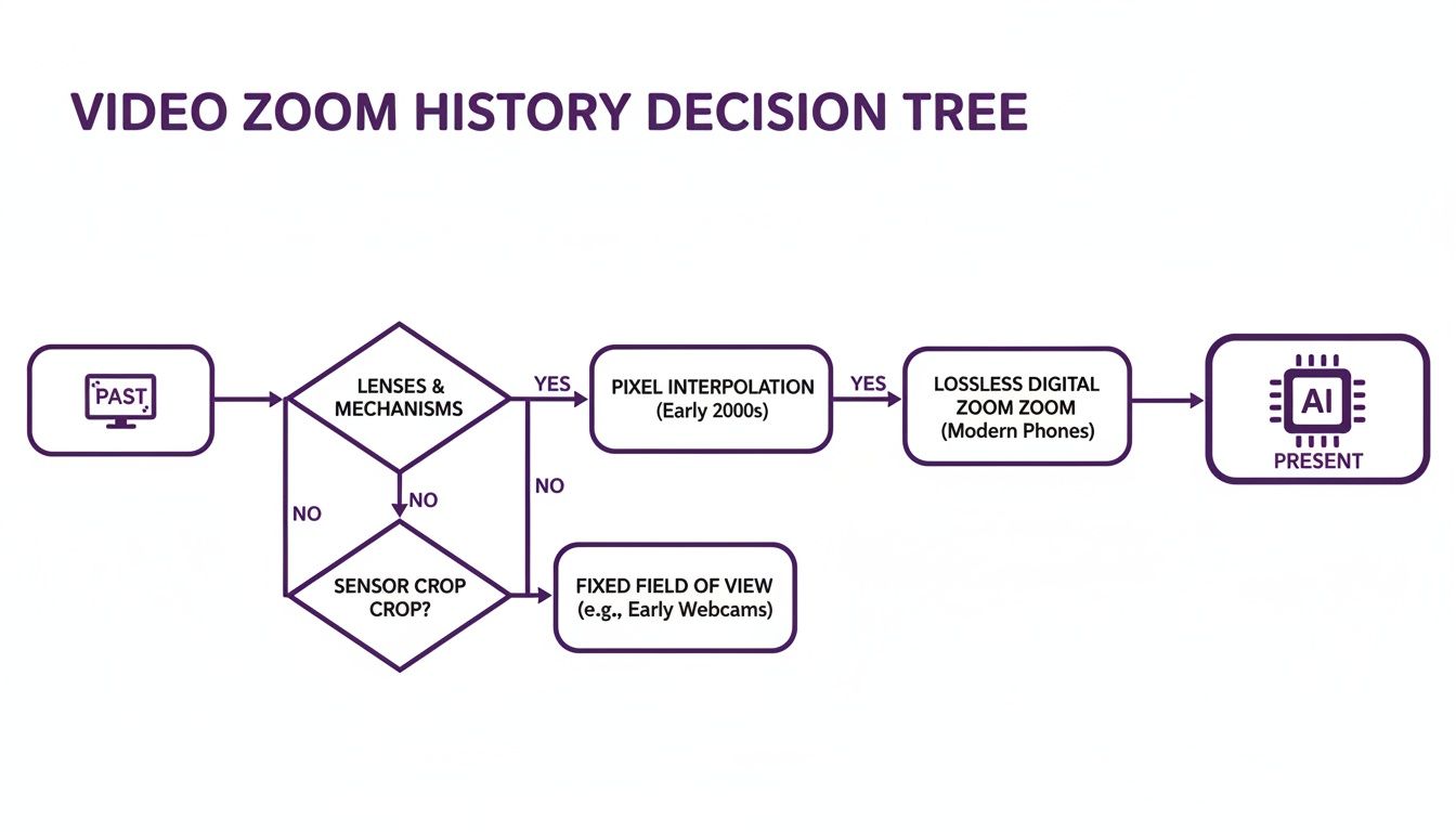 To really get why today’s smart zoom technology is such a big deal, you have to understand where we came from. For a long time, the idea of cleanly zooming into a video clip was more of a headache than a helpful tool. The constant battle with quality loss and the sheer tedium of manual editing made creating sharp, detailed tutorials a pipe dream for most.