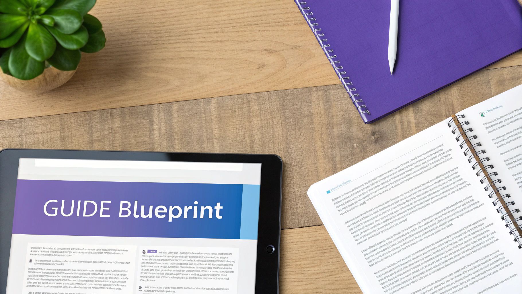 A quick reference guide template is essentially a ready-to-use framework for creating those super-handy, one-page documents that help your team get things done right—and fast. Think of it as a standardized blueprint. It ensures the most critical information is always presented in a clear, consistent way, turning what might be a complicated process into simple, easy-to-follow steps.