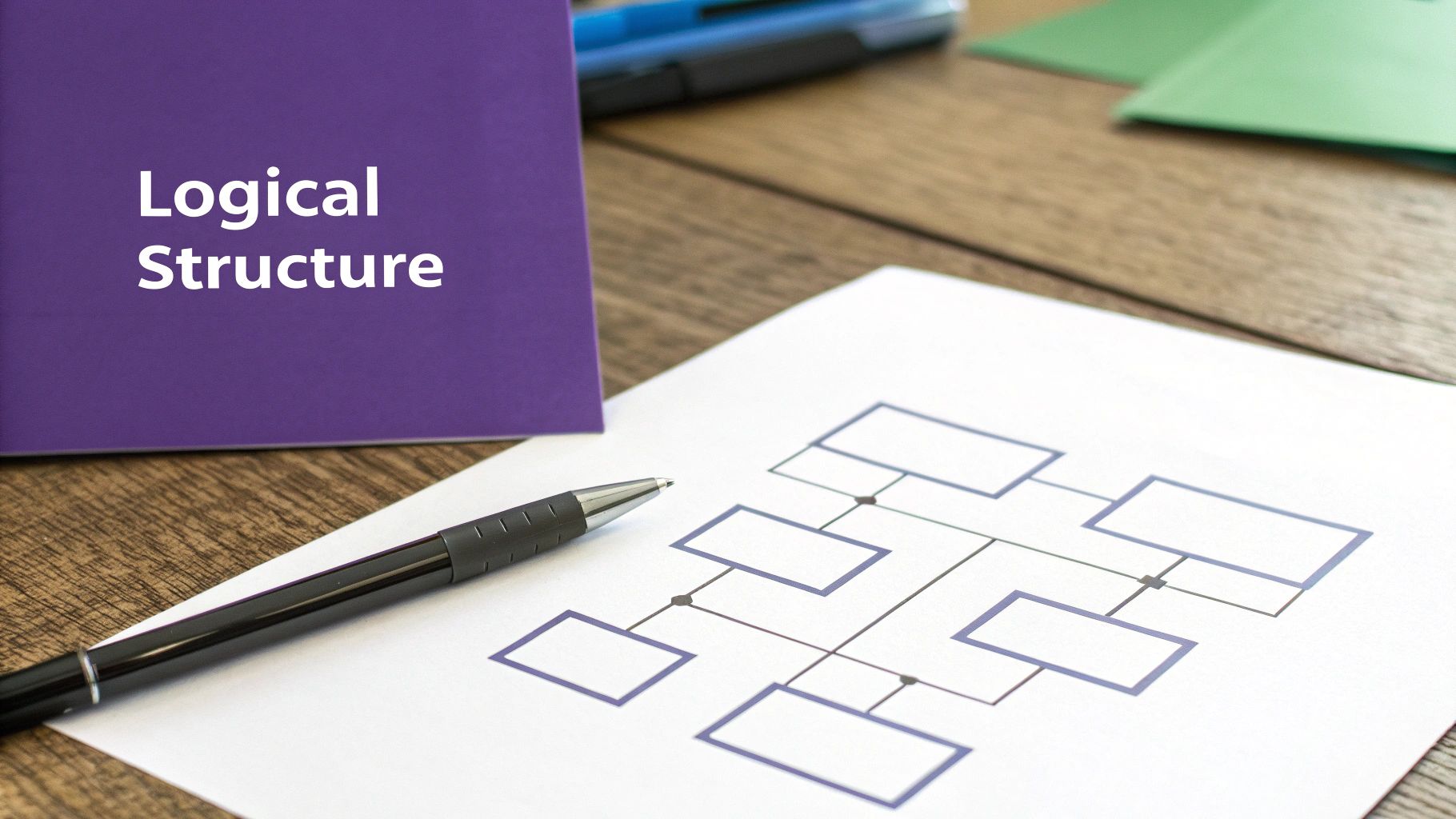 Even the clearest writing can be ineffective if users can’t find it. Structuring your documentation logically and organizing it hierarchically is a critical software documentation best practice that makes information discoverable and understandable. This involves creating a clear information architecture, grouping related topics, and providing intuitive navigation so users can effortlessly locate answers and grasp the relationships between different concepts. A well-organized documentation site acts as a roadmap, guiding users from foundational knowledge to advanced topics without confusion.