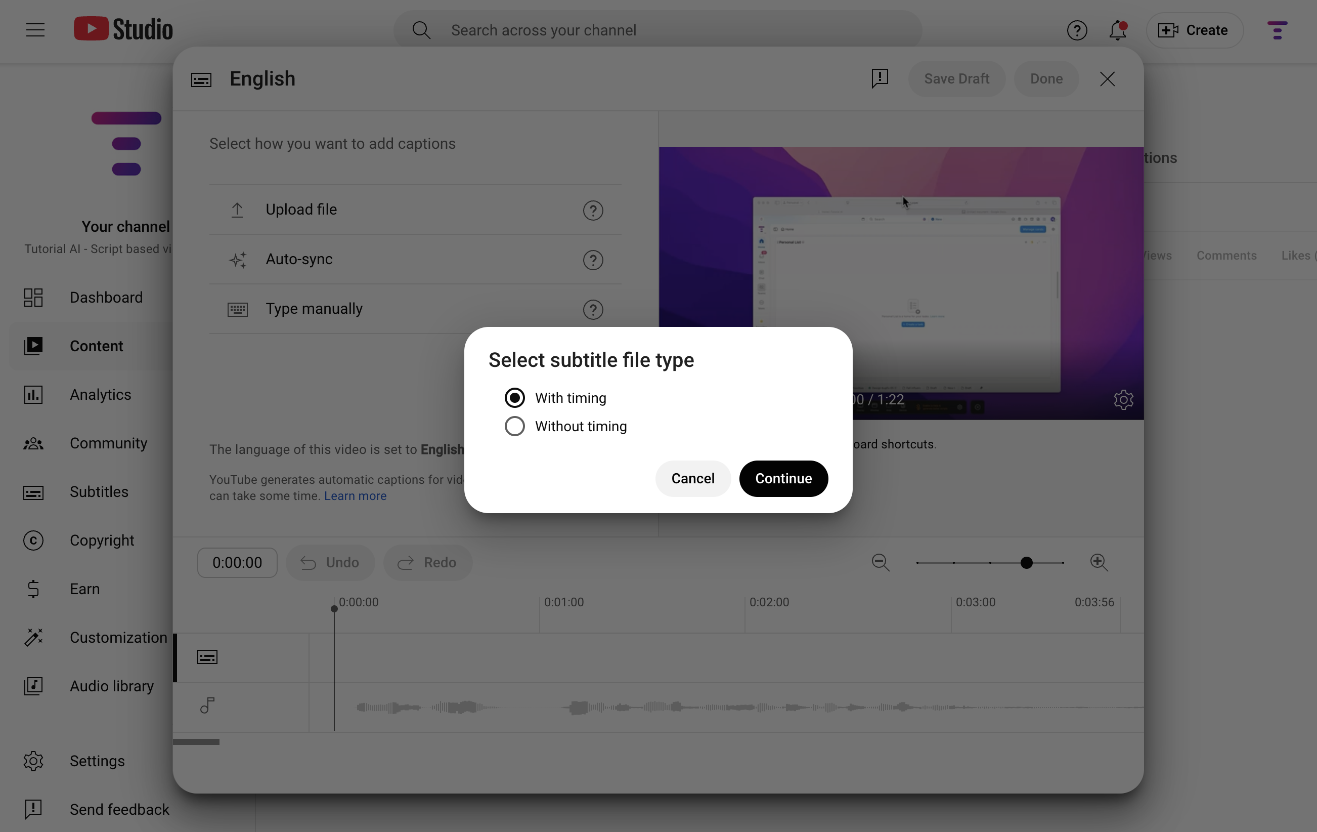 - Make sure you select the “With timing” option